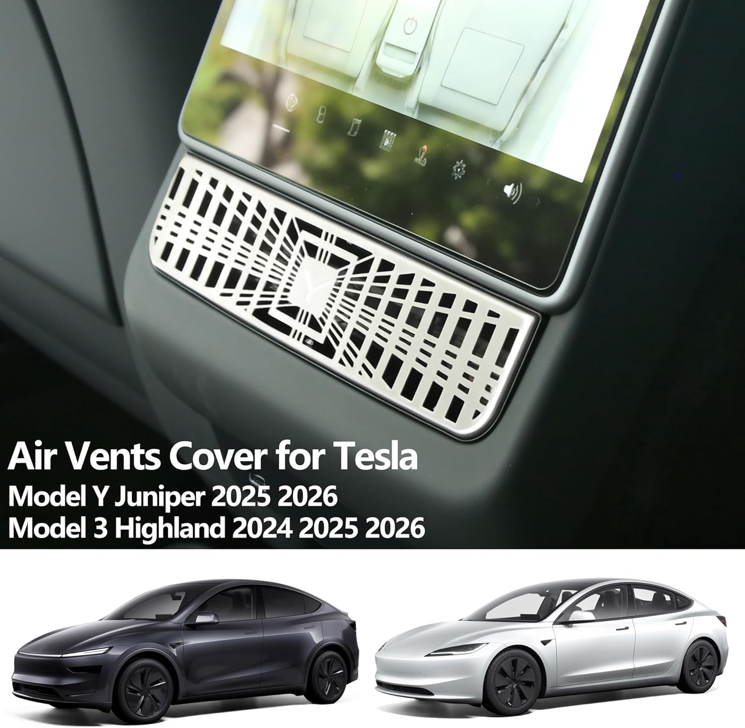 Air Vents Cover for Tesla Model Y Juniper 2026 2025 Model 3 Highland Rear AC Vent Seat Center Console Trim Cover Cap Backseat Air Conditioner Outlet Vent Grille Protector