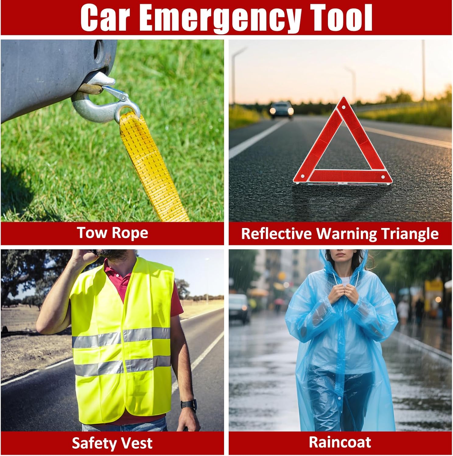 AUTODECO Car Roadside Emergency Kit, Car Safety Kit Portable Vehicle Kits for Emergency with Jumper Cables, Tow Straps, Safety Hammer, Black