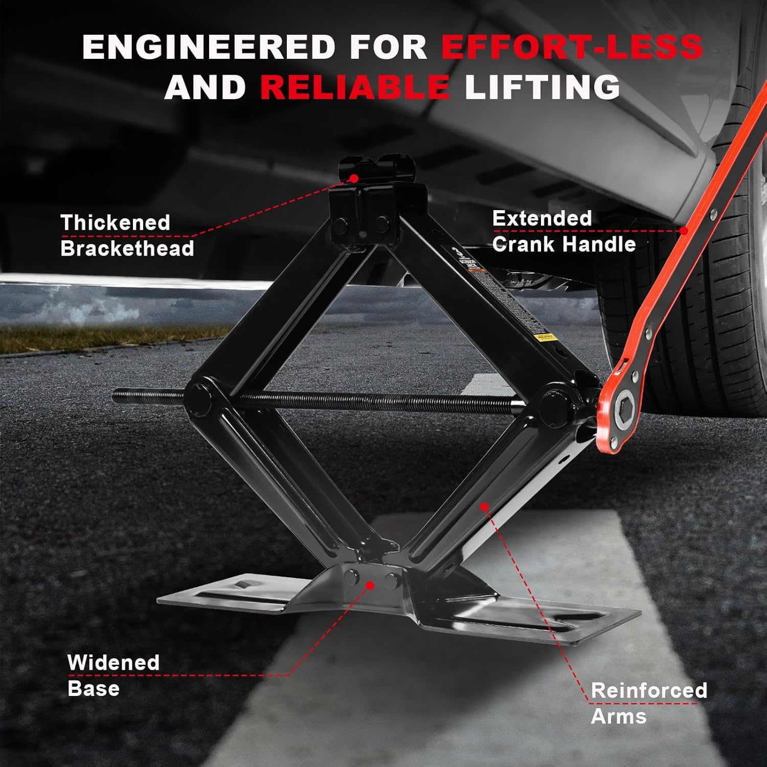 Big RED Car Jack 3Ton/6610 lbs Universal Scissor Jack with Rubber Pad, Portable Tire Changing Kit with Lug Wrench, Emergency Kit for Sedan SUV MPV