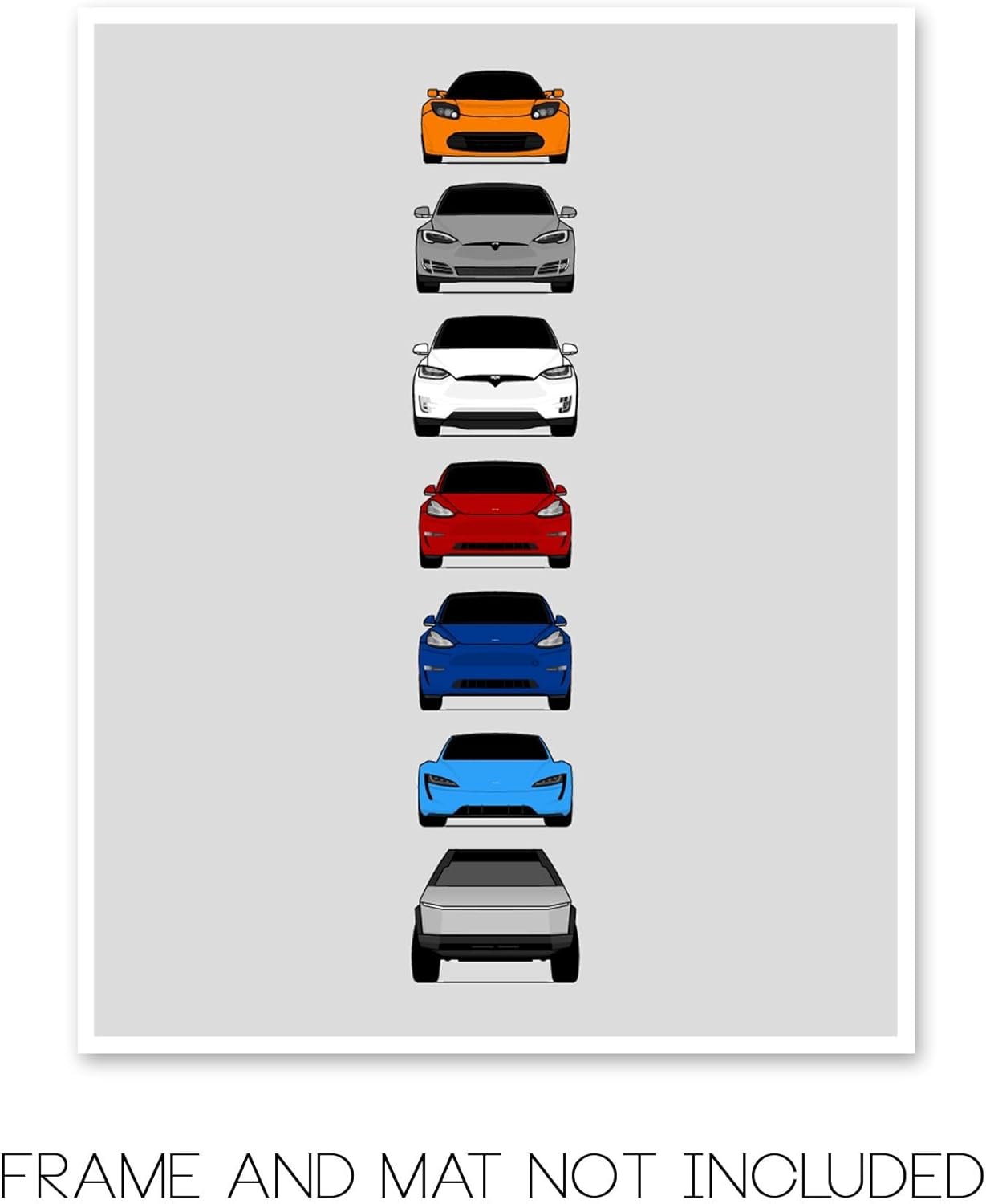 Custom Car Posters Handmade Poster compatible with Tesla Generations History (Roadster, Model S, Model X, Model 3, Model Y, Cyber Truck) Print – Multi, 16×20 Satin Print (Unframed)