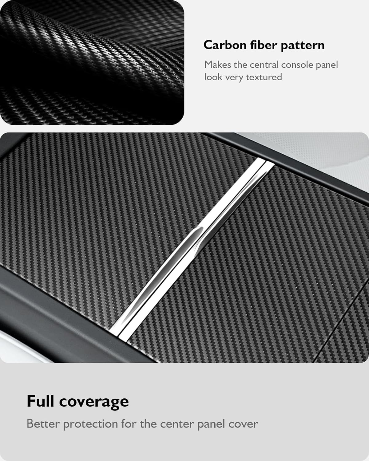 Farmogo Center Console Wrap Kit for Tesla Model 3(Highland) 2024 2025 and Model y Juniper Accessories Console Cover Interior Decoration Wrap Kit(Matte Carbon Fiber)