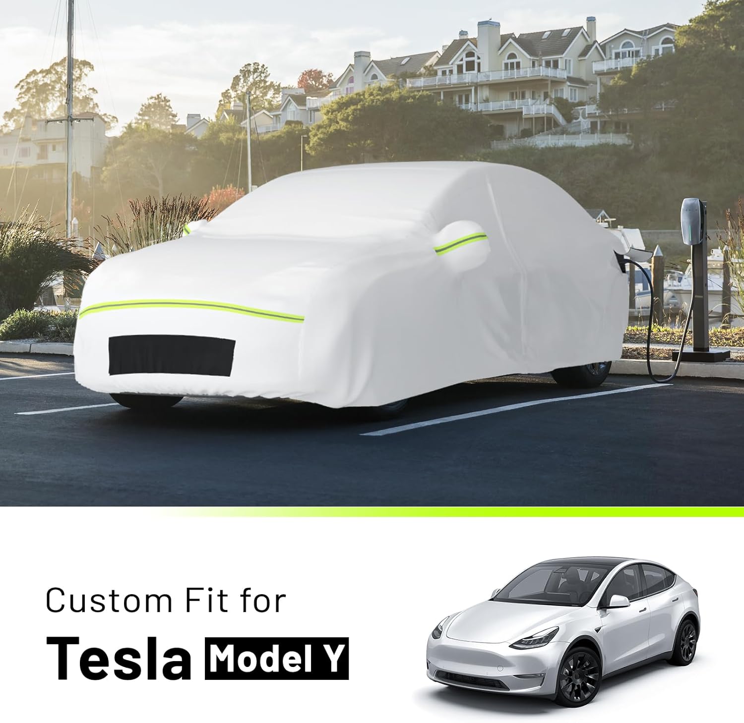 Favoto Car Cover for Tesla Model-Y – Custom Fit Vehicle Cover 6 Layers Waterproof All Weather Outdoor Rain Snow Sun Protection with Ventilated Mesh Charging Port Door Zipper