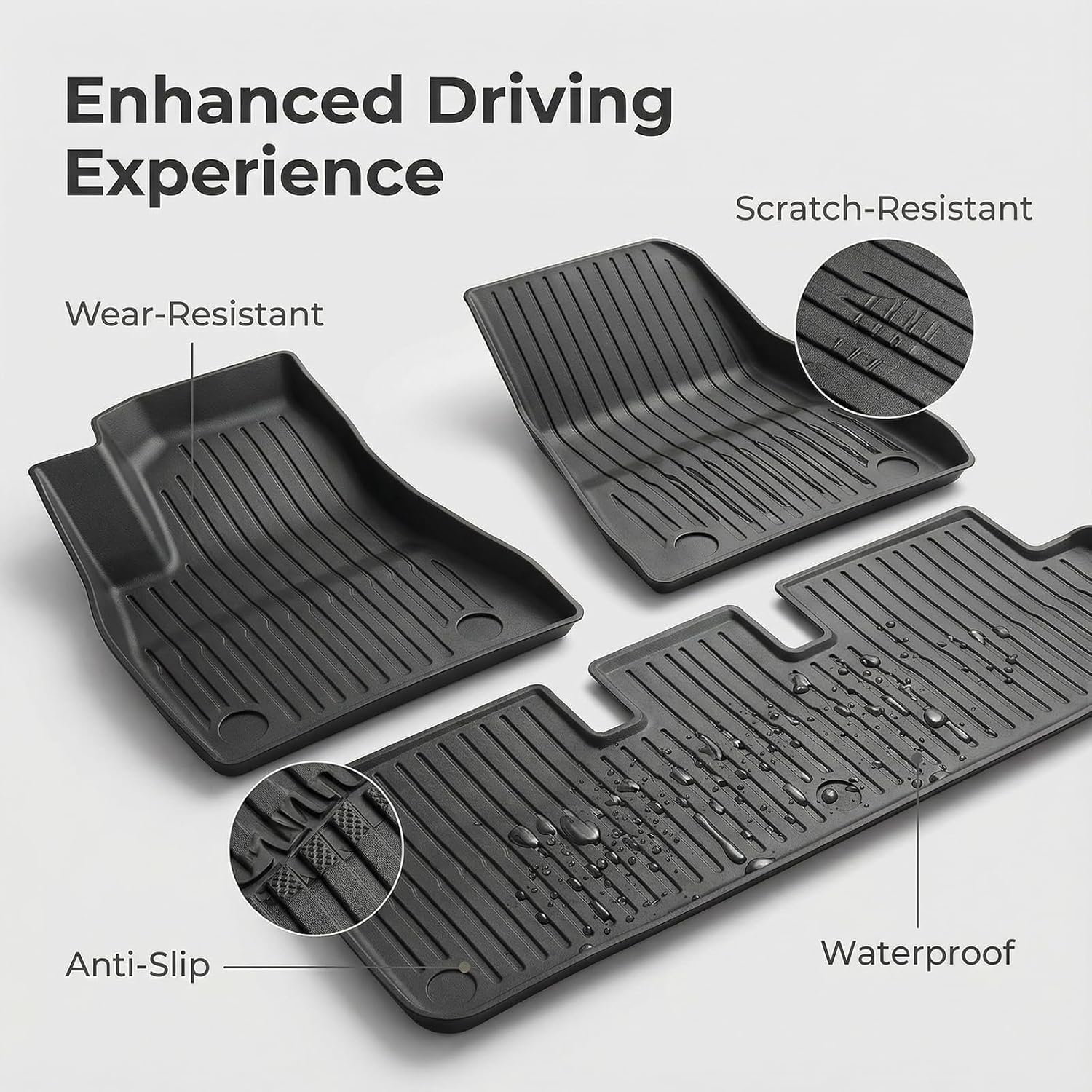 Floor Mats for Tesla Model 3 Highland 2024-2026, Custom Fit All Weather TPE Floor Mats Full Set, Waterproof Anti-Slip Interior & Trunk Protection