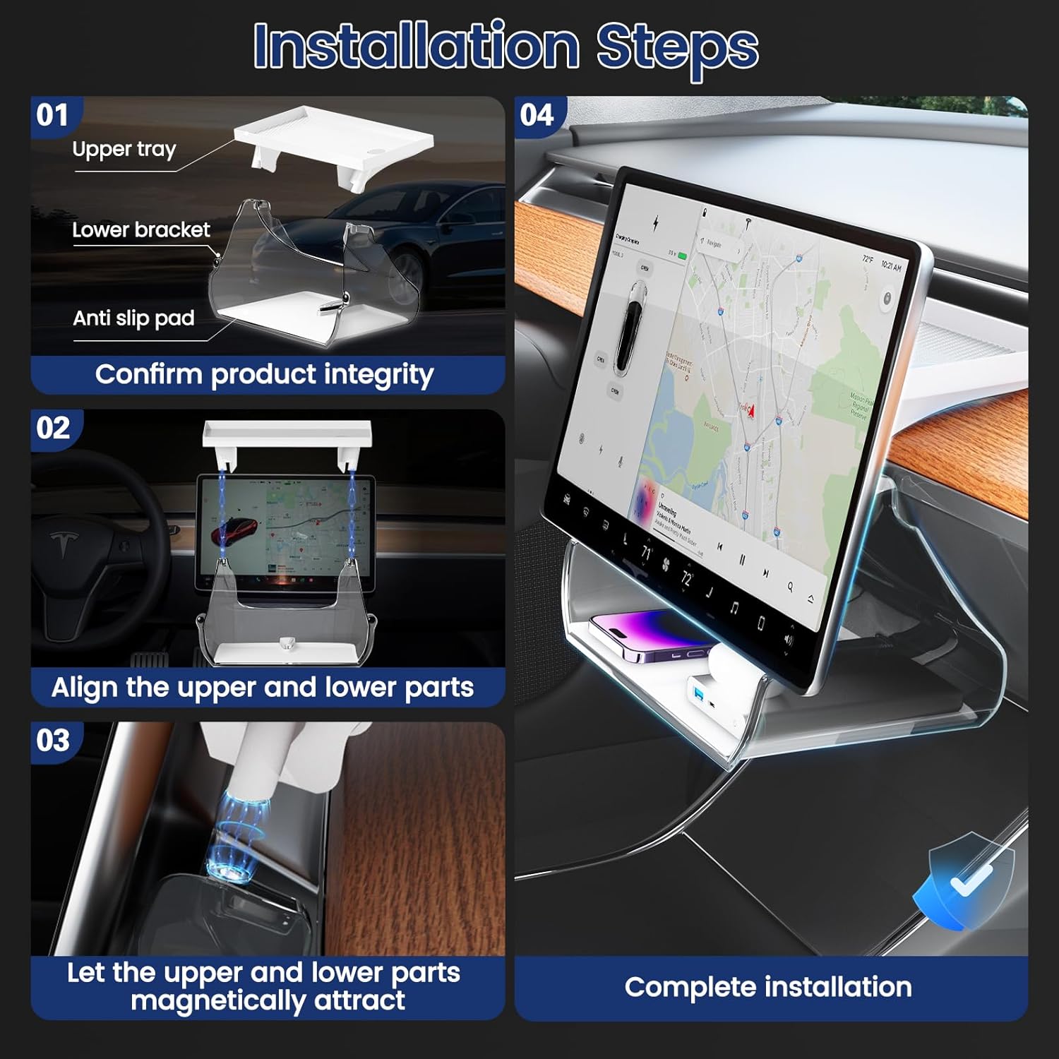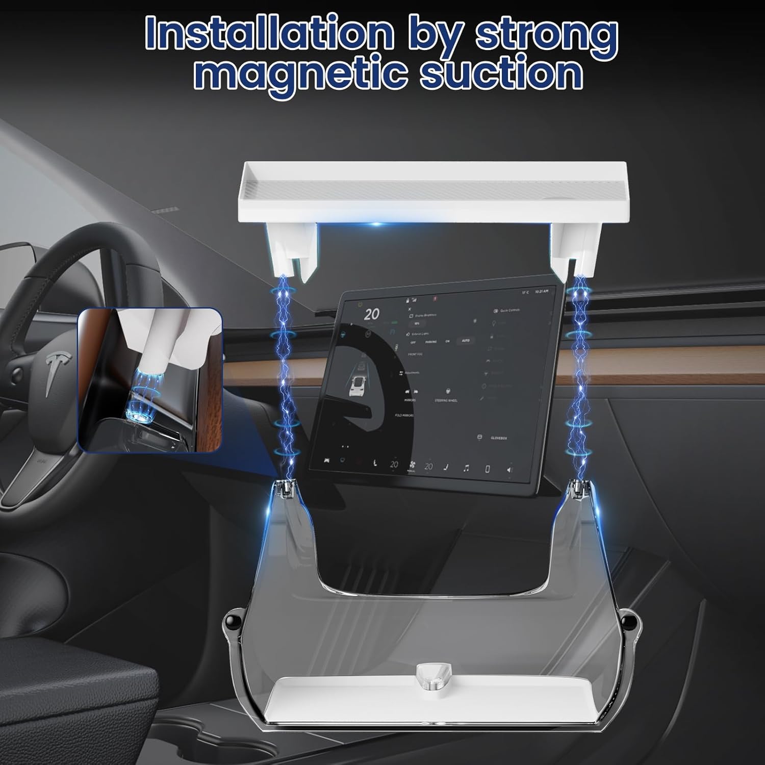 for Tesla Model Y Model 3 Center Console Organizer Tray, Computer Screen Tray, Magnetic Screen Storage Box, Behind Tissue Holder, Tesla Model Y Accessories 2024-2021