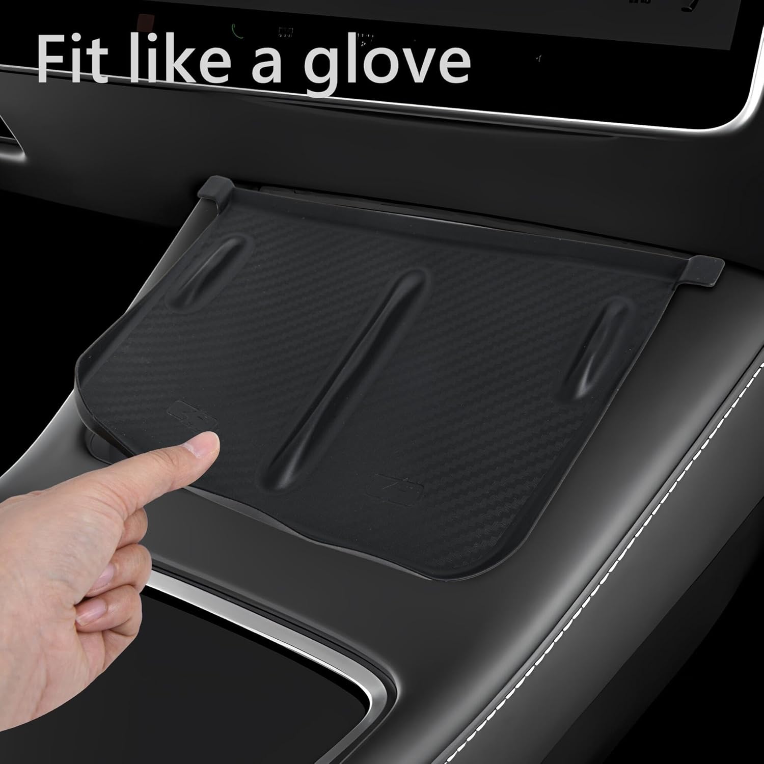 frani Center Console Silicone Mat(Black Carbon Fiber Texture) Designed for Tesla Model 3/Y 2021-2025,Tesla Center Console Cover Accessories for Model 3/Y(Not for Model 3 Highland 2024-2025)