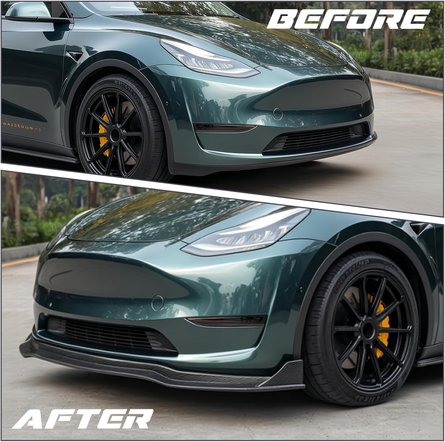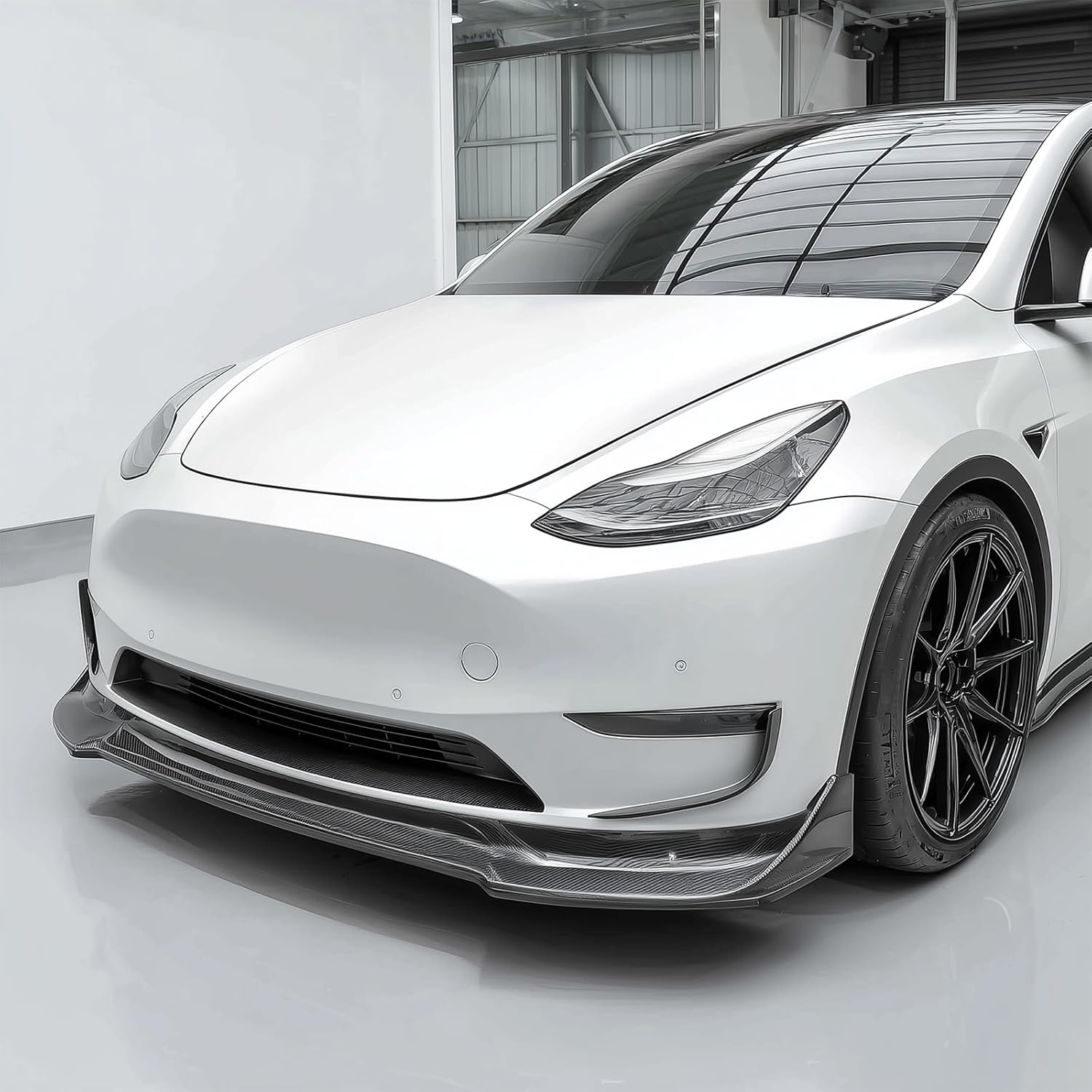 Front Bumper Lip Spoiler for Tesla Model Y Juniper 2025 2026, Carbon Fiber, 3-Piece Body Kit, Lower Air Dam Splitter