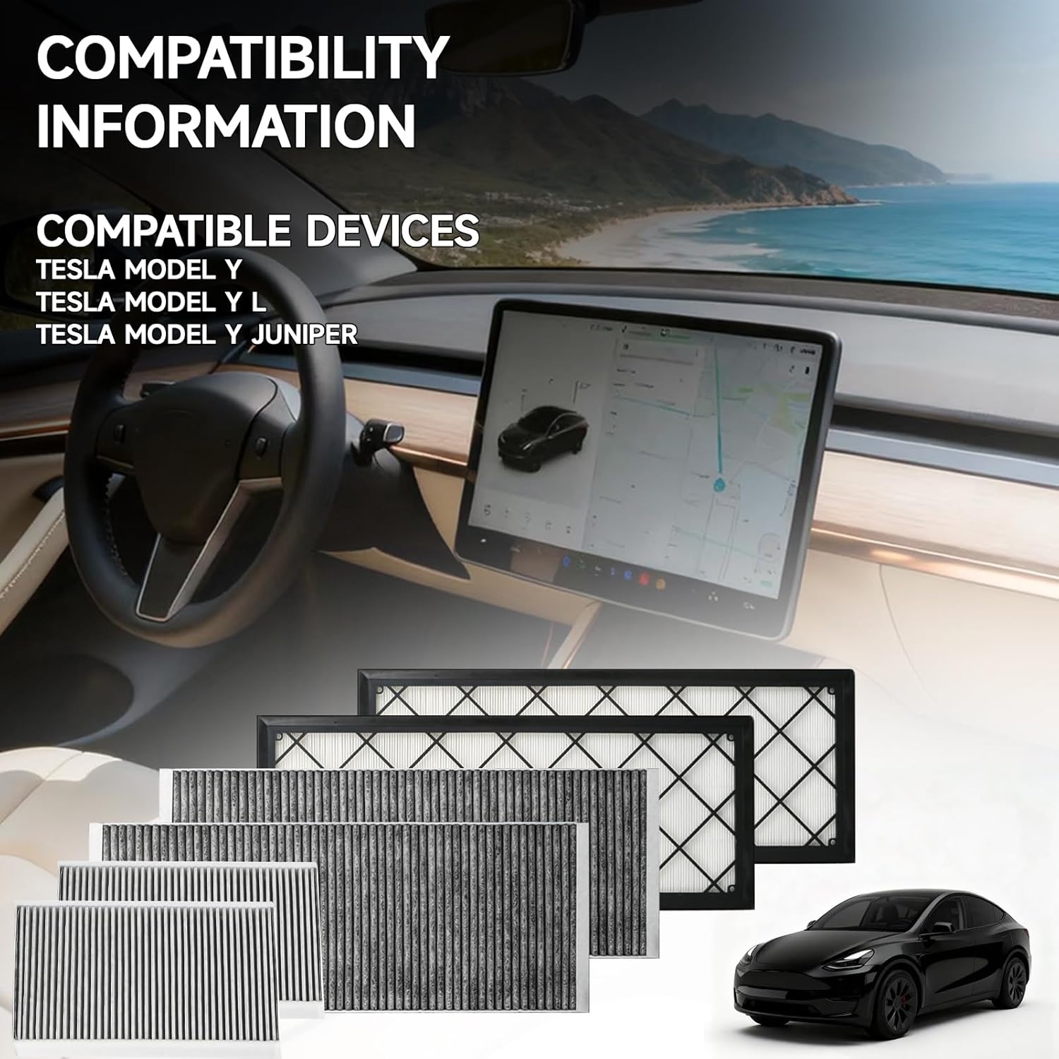 Front Trunk HEPA Carbon Air Filters Kit Fit for Tesla Model Y/Model Y L/Model Y Juniper 2020-2026, HEPA Air Filter *2 HEPA Carbon Filter *2 Cabin Air Filter *2 per Package with Installation Tools