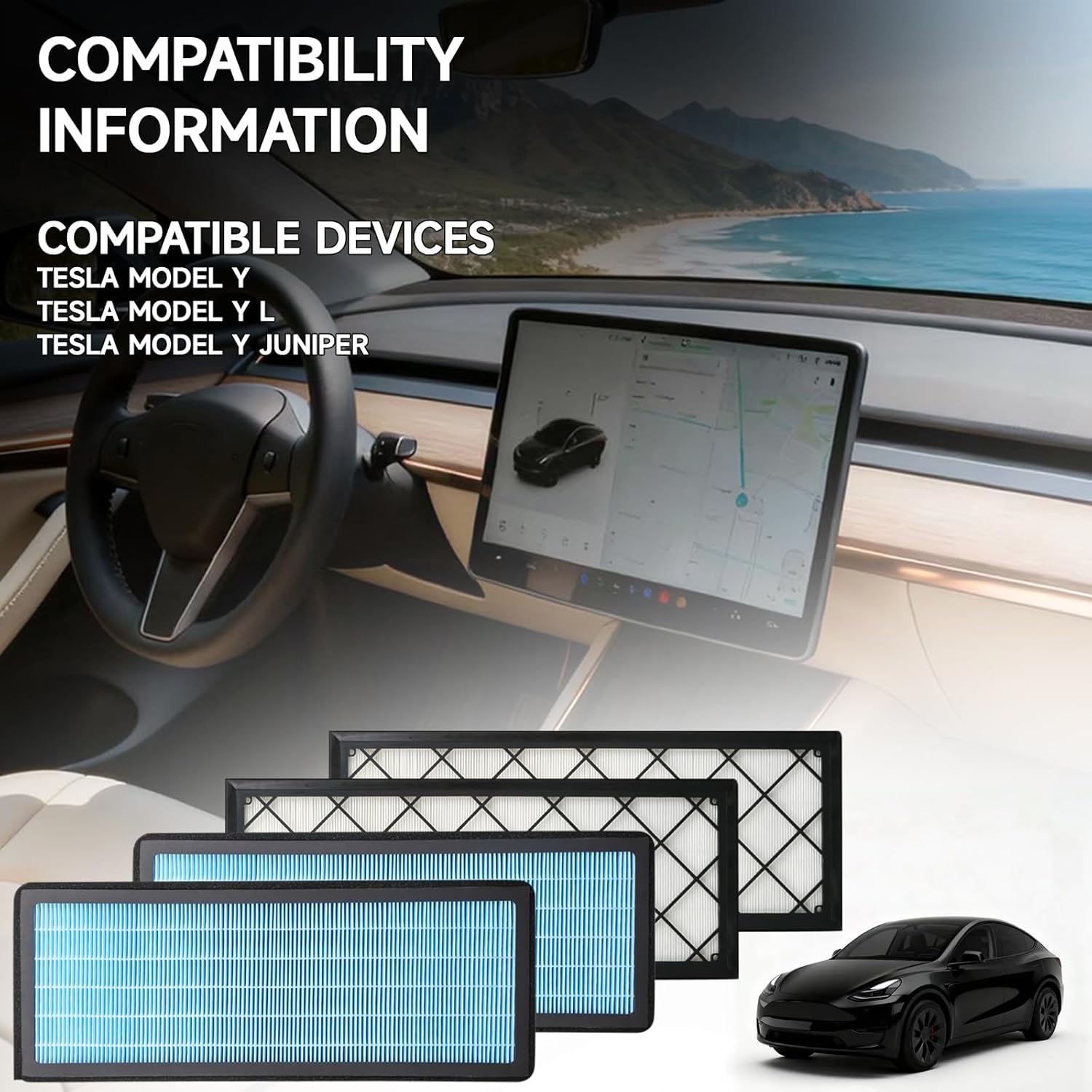 Front Trunk HEPA Carbon Air Filters Kit Fit for Tesla Model Y/Model Y L/Model Y Juniper 2020-2026, HEPA Air Filters *2 and HEPA Carbon Filters *2 per Package, 4 Packs with Installation Tools