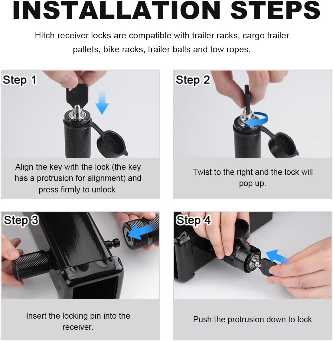 Hitch Receiver Pin Lock, 5/8″ Dia Locking Receiver Pin with 2 Keys & Anti-Rattle O-Rings, Weatherproof Anti-Theft Tow Hitch Lock for Trailer Car Boat Truck, Car Accessories