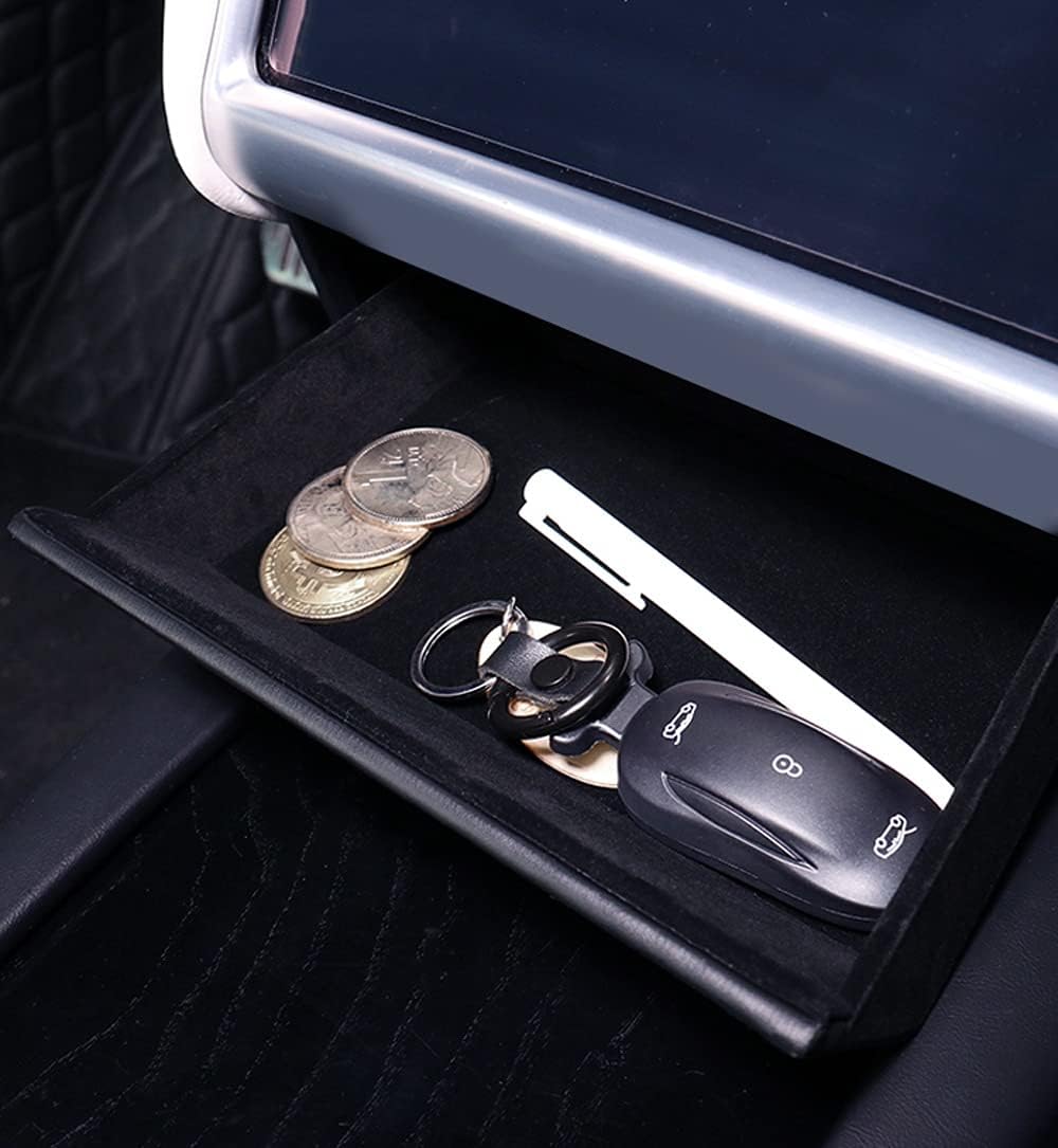 iJDMTOY Exact Fit Under Center Navigation Touch Screen Organizer Compartment Box/Tray w/Inside Mats Compatible with Tesla: 2016-2021 Model X and 2017-2021 Model S