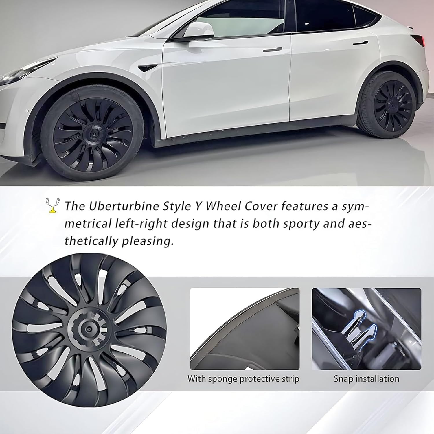 KAVANIC 4PCS Wheel Covers Fits for Tesla Model Y 19 Inch Matte Black Support Long Range Logo Symmetry Design Uberturbine Style for 2020-2024 Model Y Gemini Wheel Cover Replacement (RWD/AWD)