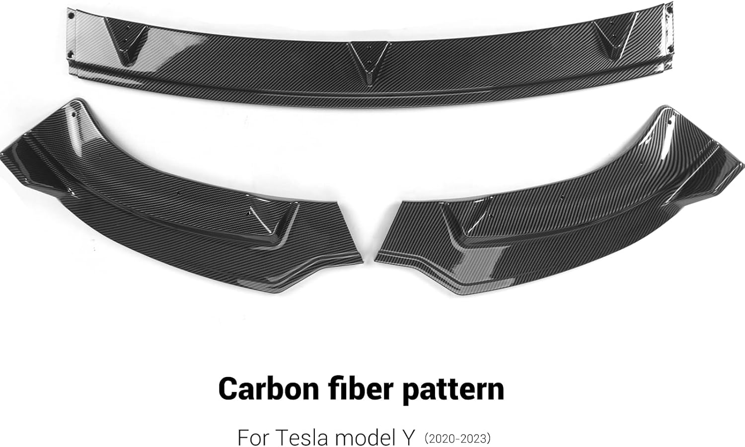 KUNGKIC Front Lip for Tesla Model Y 2020-2023 Front Bumper Lip Chin Spoiler Wing Front Splitter Side Body Kit Trim Splitter Diffuser Protector Air Dams Exterior Accessories Carbon Fiber Print