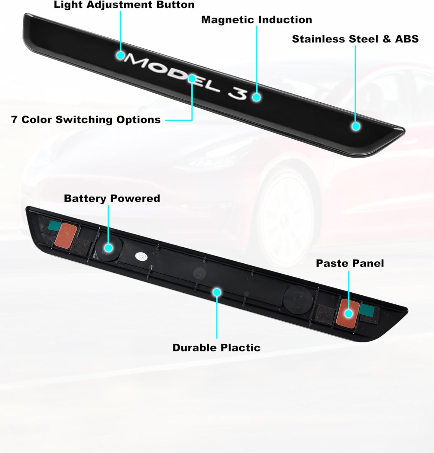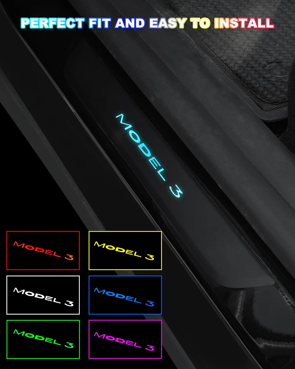 LED Door Sill Lights for Tesla Model 3 2017-2025 Accessories, ABS Scratch-Resistant Sill Protector with 7-Color RGB Lighting, Battery Powered Model 3 Pedal Mood Lamp, Matte Black, 4PCS