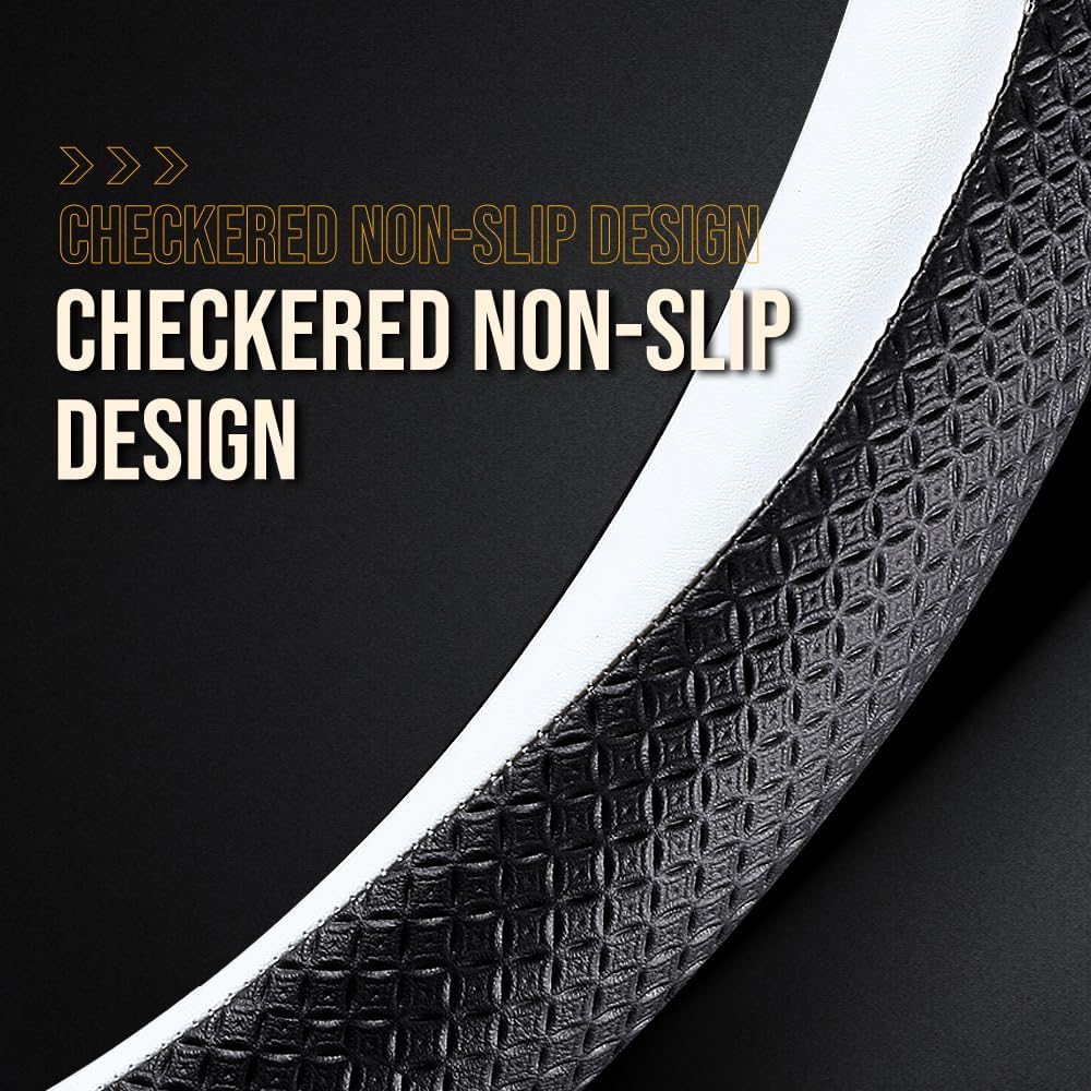 LKWLIKEI Nappa Leather Ultra-Thin Steering Wheel Cover, for Tesla Model 3/Y Steering Wheel Cover, Non-Slip Design and Interior Modification of car Accessories (White)