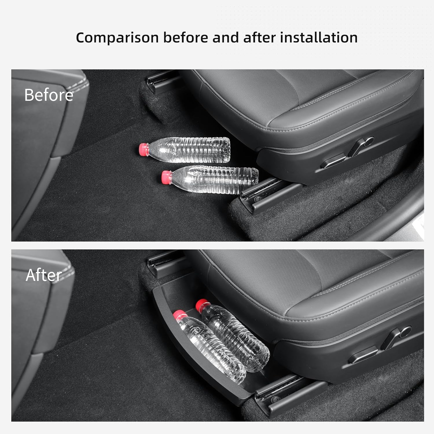 LUCKEASY 2PCS UnderSeat Storage Organizers for Tesla Model Y Juniper 2025 2026 1st Row Under Seat Storage Box Driver & Passenger Organizers for Model Y Juniper Accessories TPE Black
