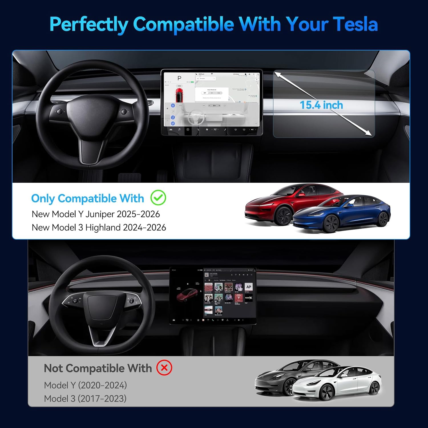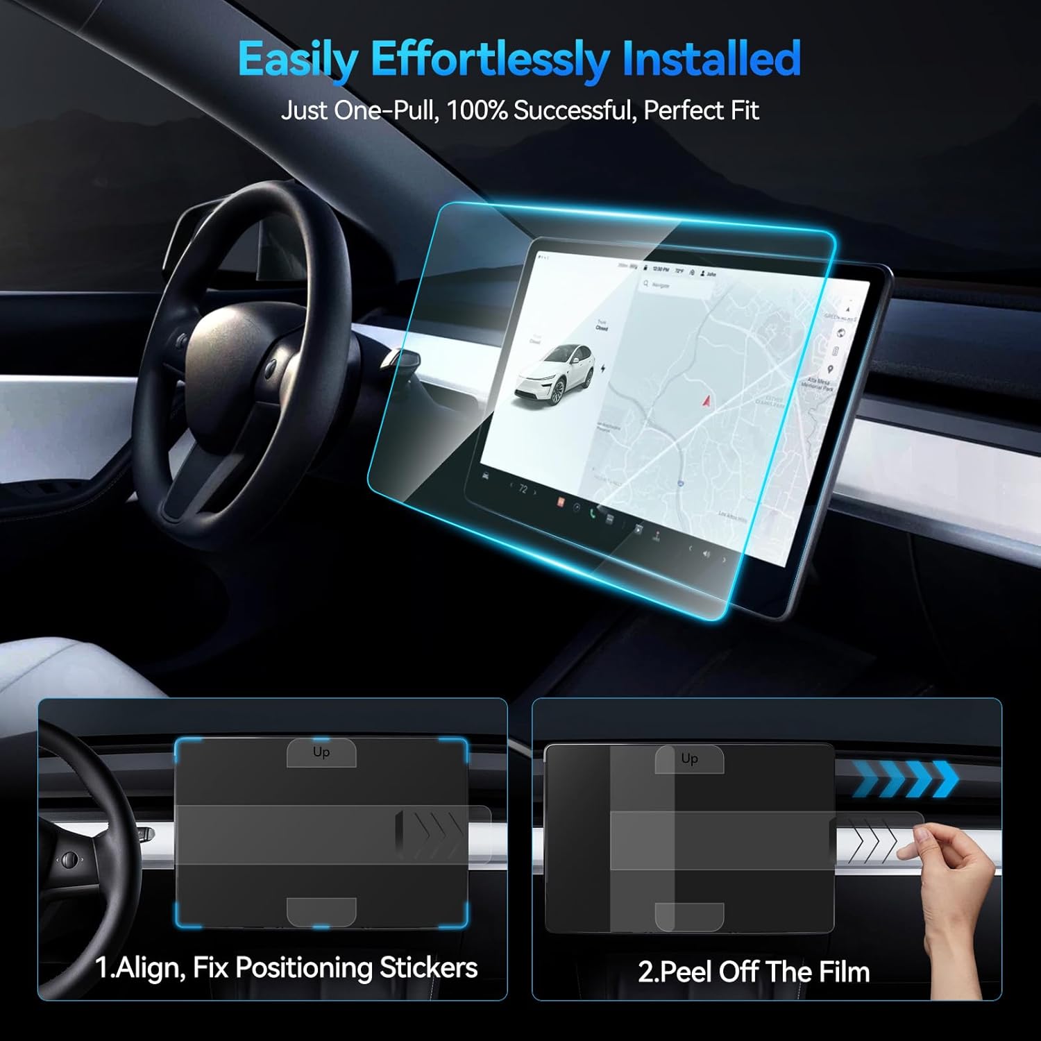 Matte Screen Protector for Tesla Model Y Juniper(2025-2026) & Model 3 Highland(2024-2026) [No More Glare & Fingerprint & 9H] Tempered Glass Protector for Model 3 Model Y Juniper Accessories