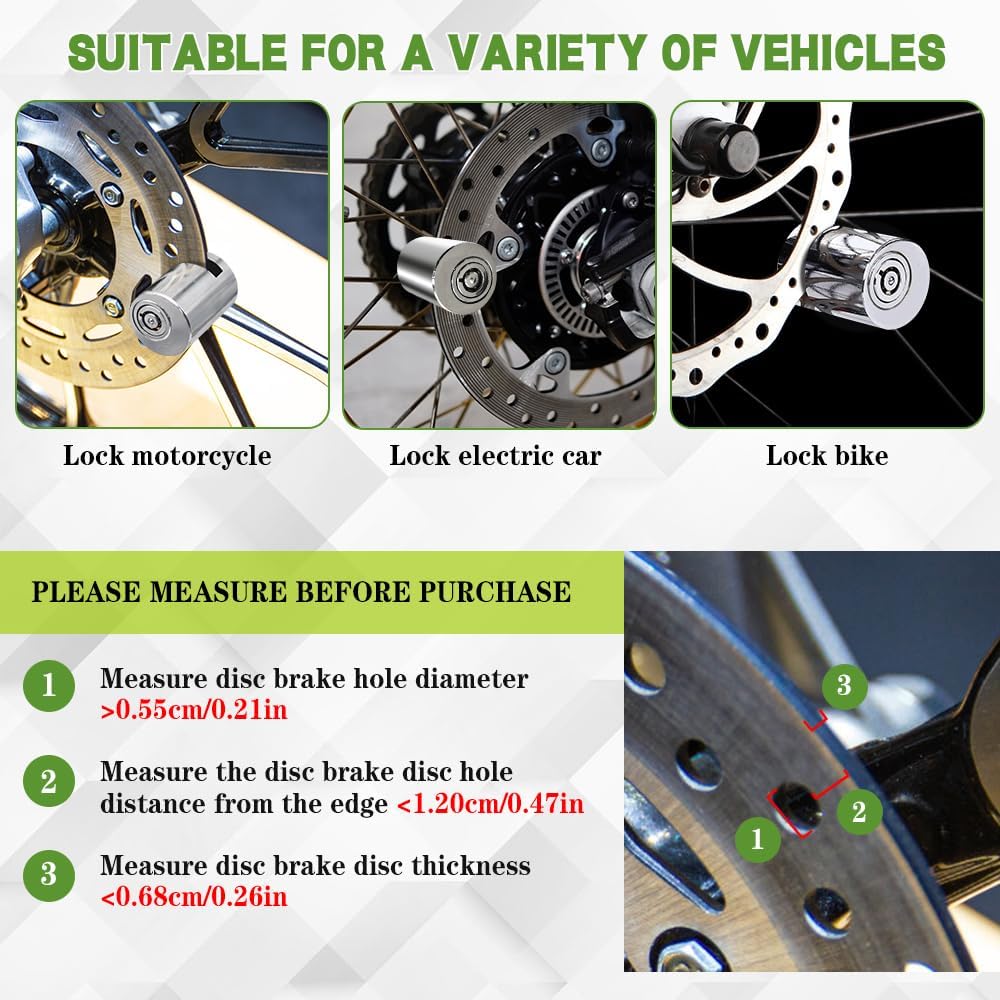 Motorcycle Disc Brake Lock, Motorcycle Locks Anti Theft, Motorbike Safety Anti-Theft Wheel Disk Lock with Two Keys, Heavy Duty Alloy Steel Brake Padlock for Bicycle Electromobile Road Cycle