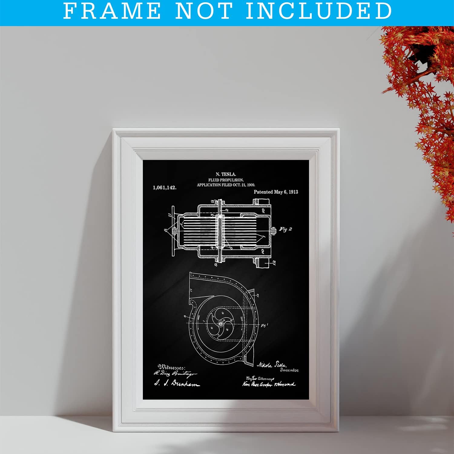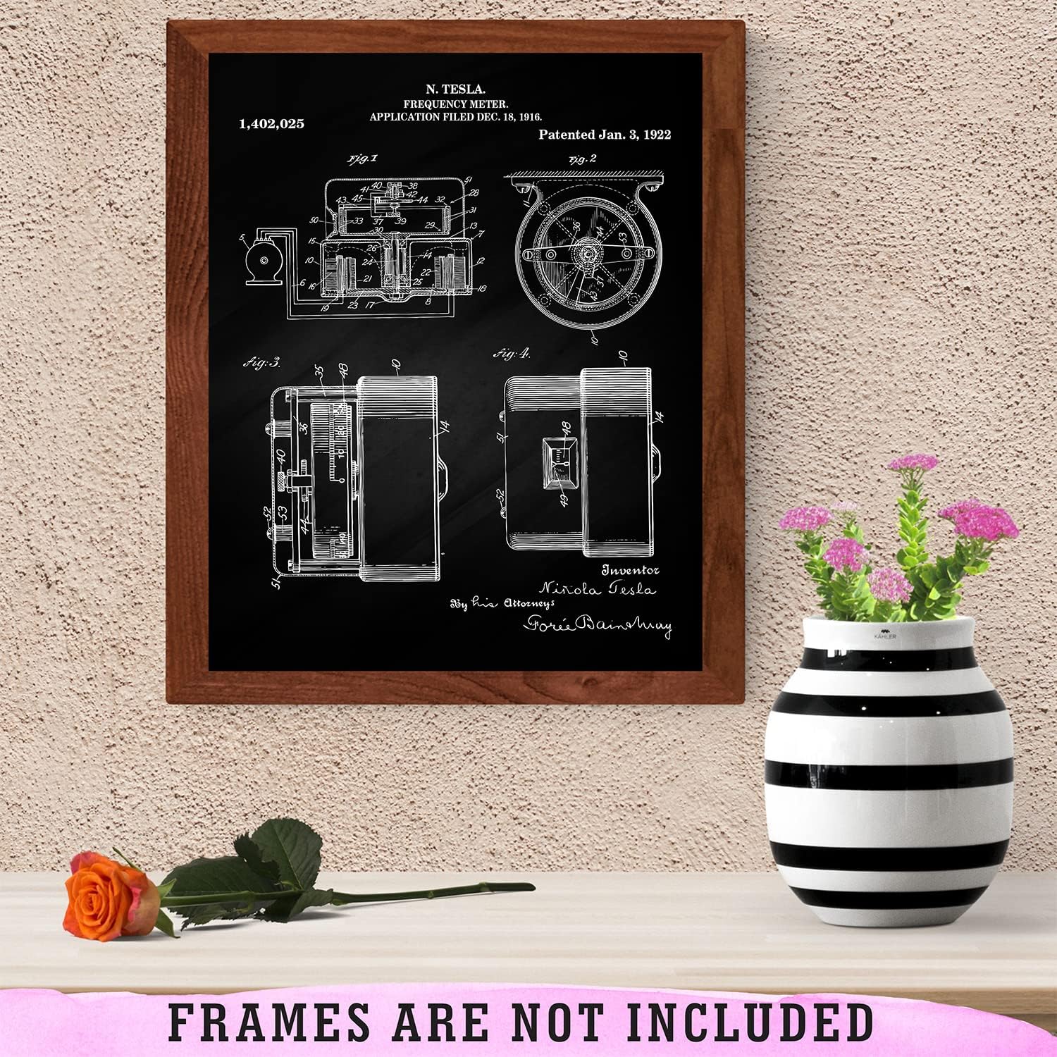 Nikola Tesla Vintage Patent Wall Art – Geek Steampunk Home Office Industrial Wall Decor – Engineer Gifts Idea for Mechanical Electrical Men Women Science Grad Nerd – Unframed 8×10 Poster Prints