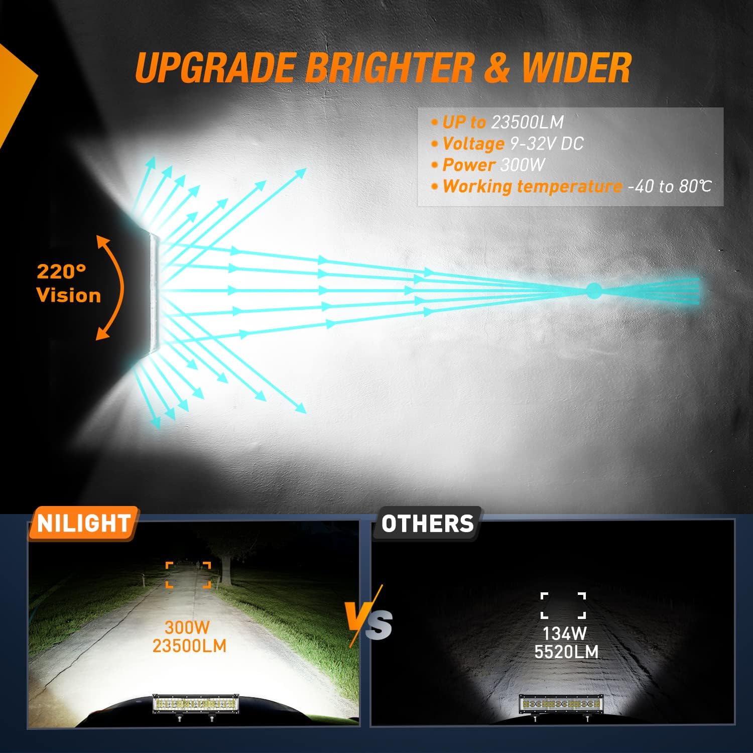 Nilight 13.5 Inch Side Shooter LED Light Bar Quadruple Row Spot Flood Combo Lights w/Wiring Kit for Fog Driving Work Lighting on Truck SUV ATV UTV Pick-up Van Boat Tractor