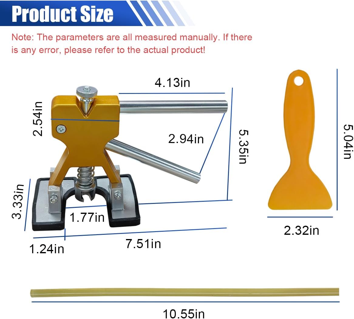 Paintless Car Dent Puller Kit, Auto Body Dent Repair Tool Kit with 18 Tabs, 5 Glue and Scraper, Golden Lifter Dent Remover for Vehicle Hail Damage Repair & Other Metal Surface