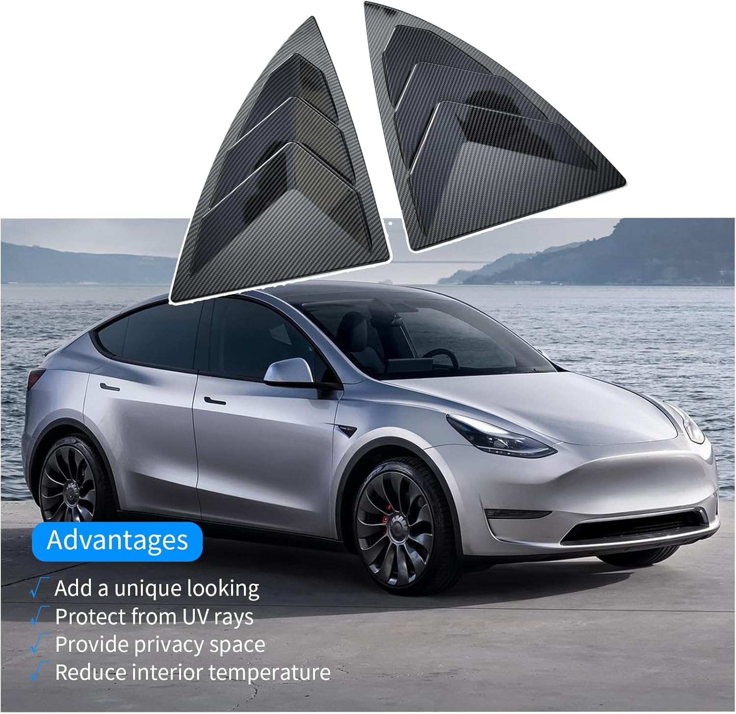 Rear Side Window Louvers Compatible with Tesla Model Y 2020 2021 2022 2023 2024, Sunshade Exterior Side Air Vent Scoop Shades Cover Blinds 2PCS (Glossy Carbon Fiber Pattern)