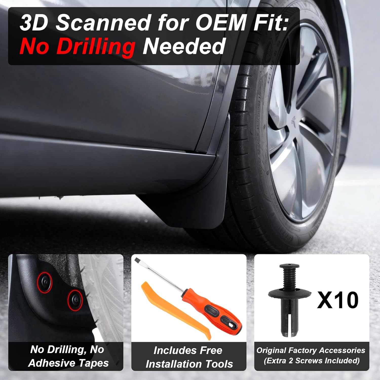 RUTU Mud Flaps for Tesla Model Y Juniper 2025 2026-4PCS All Weather No-Drill Splash Guards – TPE Front & Rear Fender Protection Kit, Tesla Model Y Accessories