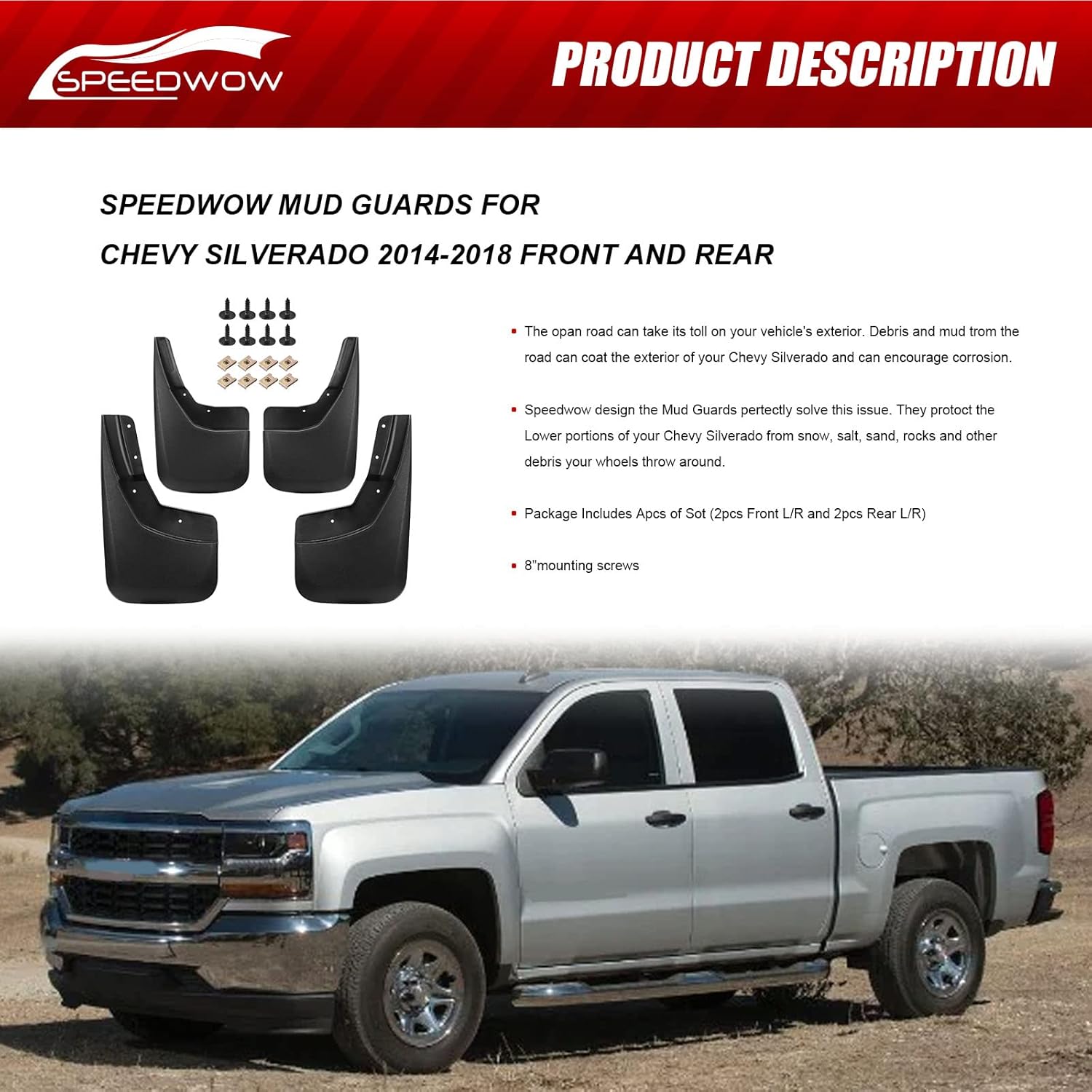SPEEDWOW Mud Flaps Splash Guards Fit for 2014-18 Chevrolet Silveado 1500, 2019 Silverado 1500 LD, 2015-19 Silverado 2500/3500 Heavy Duty,Front and Rear 4Piece/Set(No Drilling Required)