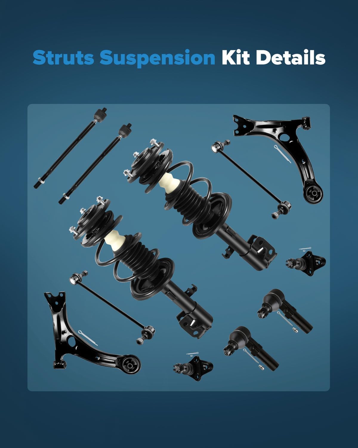 Struts Shock suspension kit for 2009 2010 2011 2012 2013 for Toyota Corolla 2011 2012 2013 for Toyota Matrix Front Complete Strut Assembly,Ball Joint,Control Arm,Stabilizer Bar Link 12 Pcs