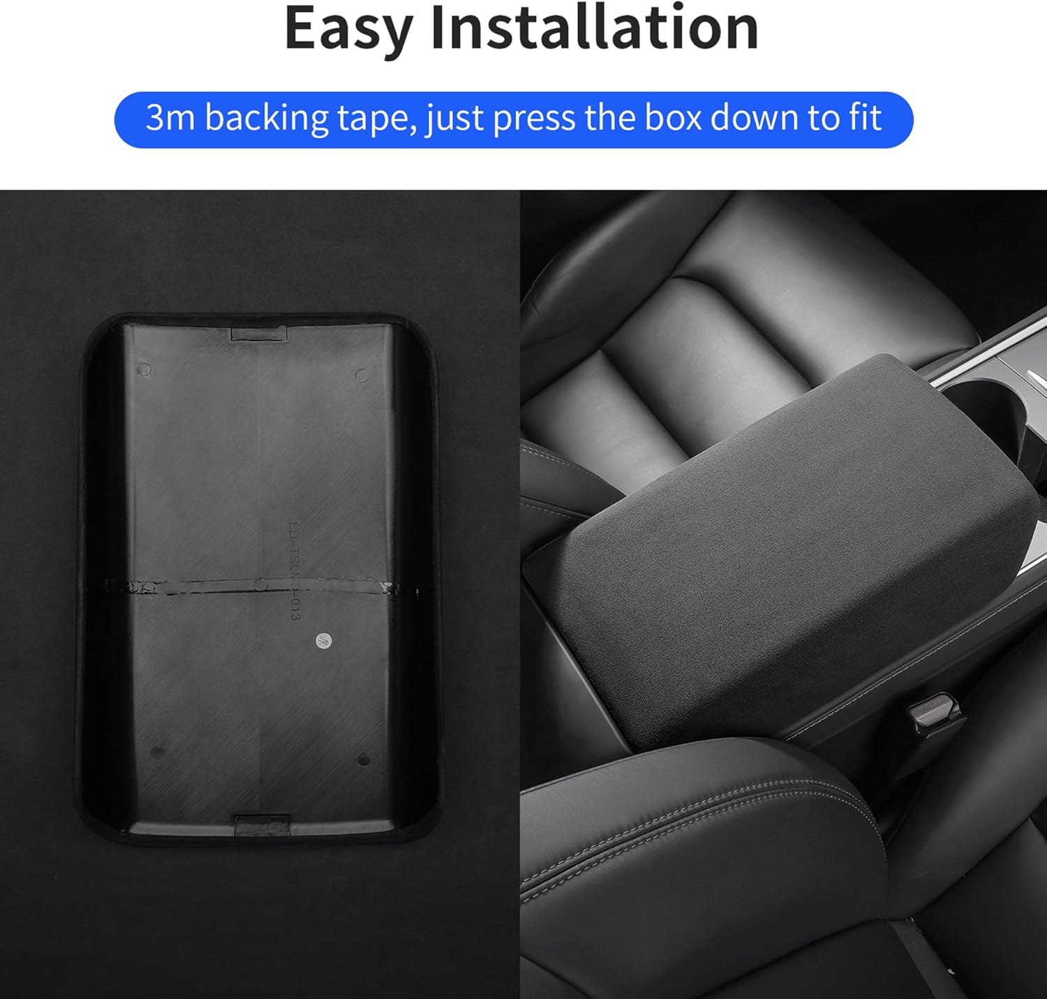Suede Armrest Cover, Center Console Armrest Seat Box Cover Protector, Compatible with Tesla Model 3 Highland 2024-2025 & Tesla Model Y Juniper 2025, Interior Trim Cover