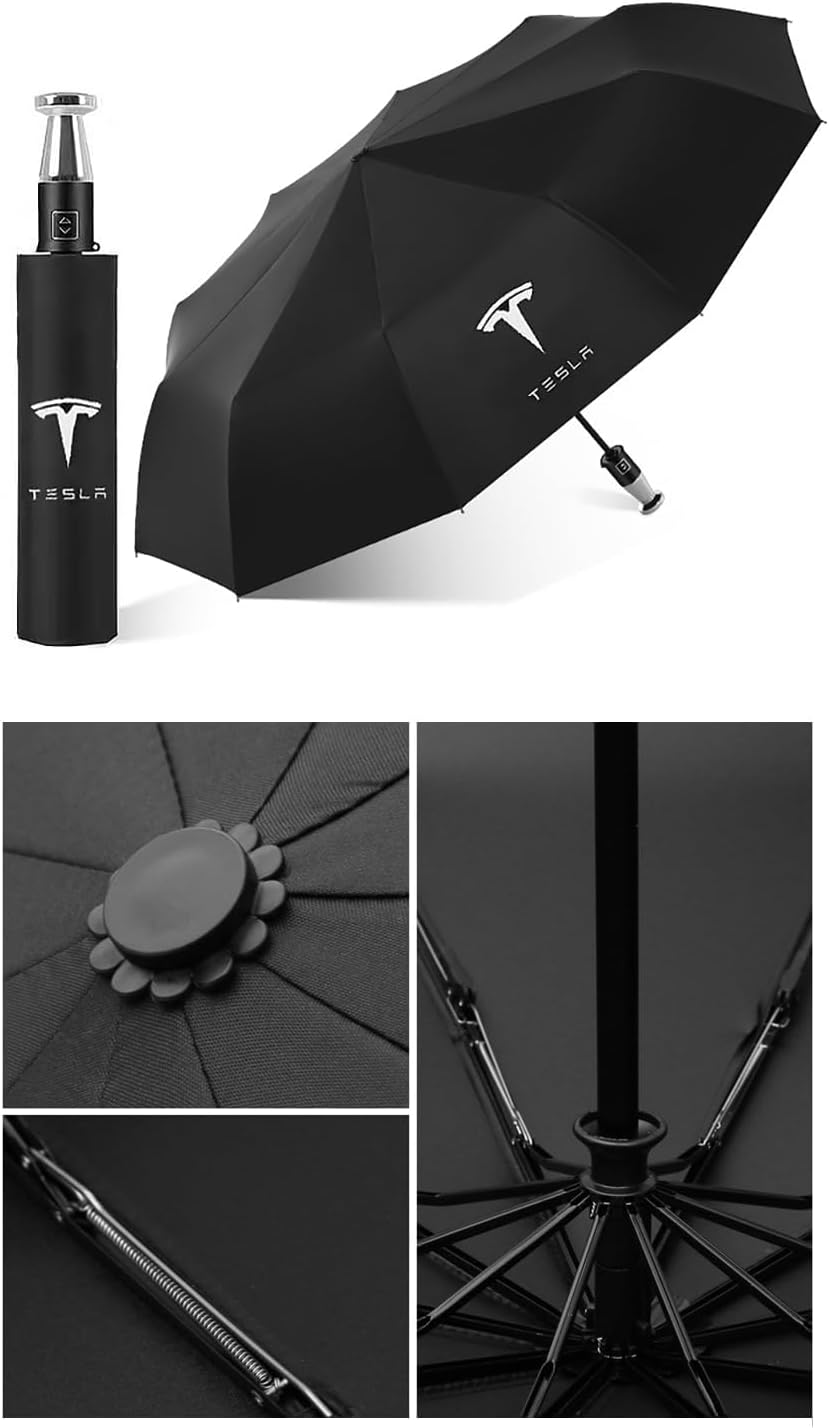 Tesla Auto Folding Umbrella with Logo, Waterproof, Windproof Sunshade, Travel Gear, Gifts for Men and Women, and Festival Merchandise