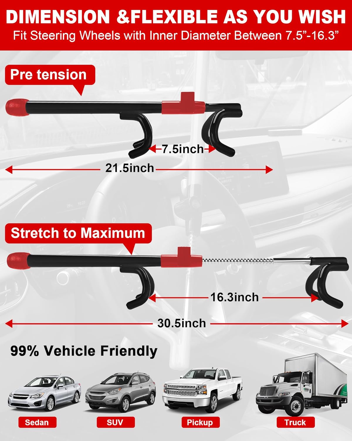 Tevlaphee Car Steering Wheel Lock Great Deterrent Adjustable Car Lock Steering Wheel Anti Theft Car Device for Vehicles,Trucks,Vans,SUVs (Black)