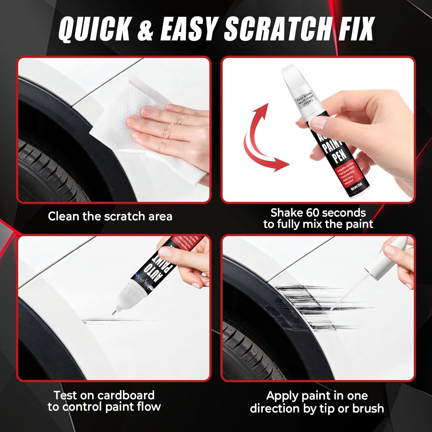 Touch Up Paint for Cars (Pearl White Multi-Coat PPSW), Compatible with Tesla Model Y/3/X/S, 0.4 fl oz Color Accurate 2-in-1 Car Paint Scratch Repair Pen, Easy to Use, Fast-Drying, Long-Lasting