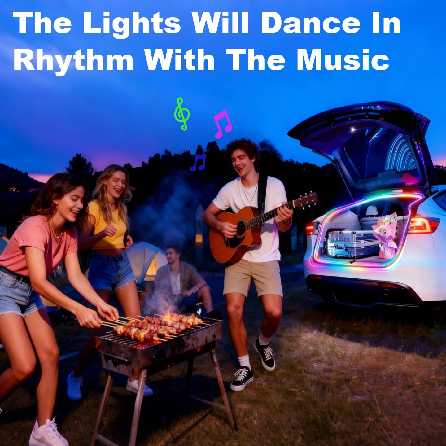 Trunk LED Ambient Neon Light Strips for Tesla Model Y & Juniper (2021-2026) – Waterproof Silicone, High Brightness, APP-Controlled, Auto On&Off, for Car Trunk & Camping Atmosphere (RGB)