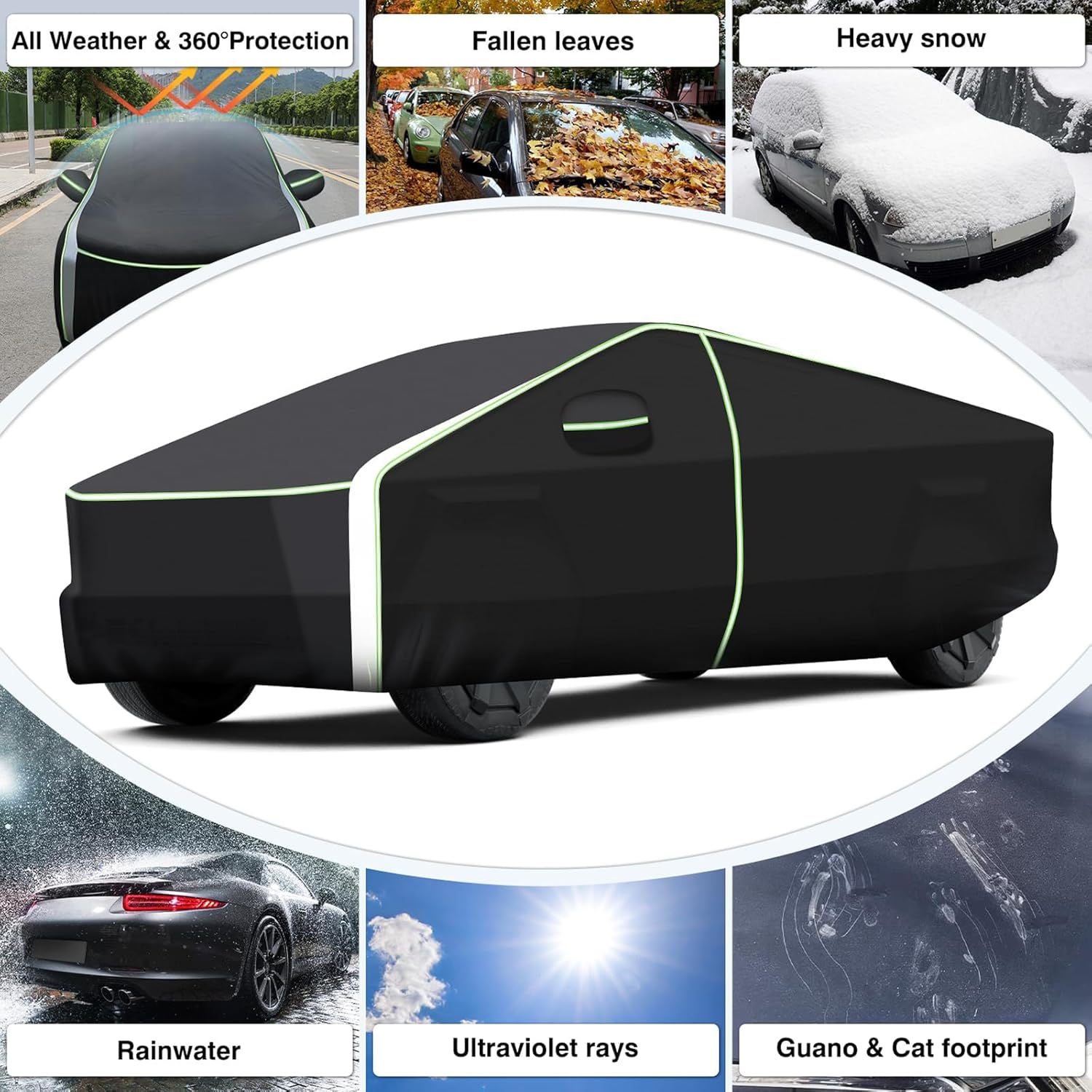 Upgrade 420D Car Cover for Tesla Cybertruck 2024 2025 2026, Waterproof All Weather Car Covers for Cybertruck Accessories, Outdoor Car Cover UV Protection with Zipper Door & Reflective Safety Strips