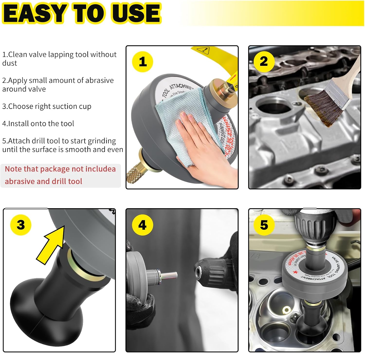 Valve Lapping Tool Kit with 5 Suction Cups,Valve Lapping Kit with Working Speed of 1000-1250 RPM,Universal Valves Grinding Tool Attachment Tools for Small Engine Repair
