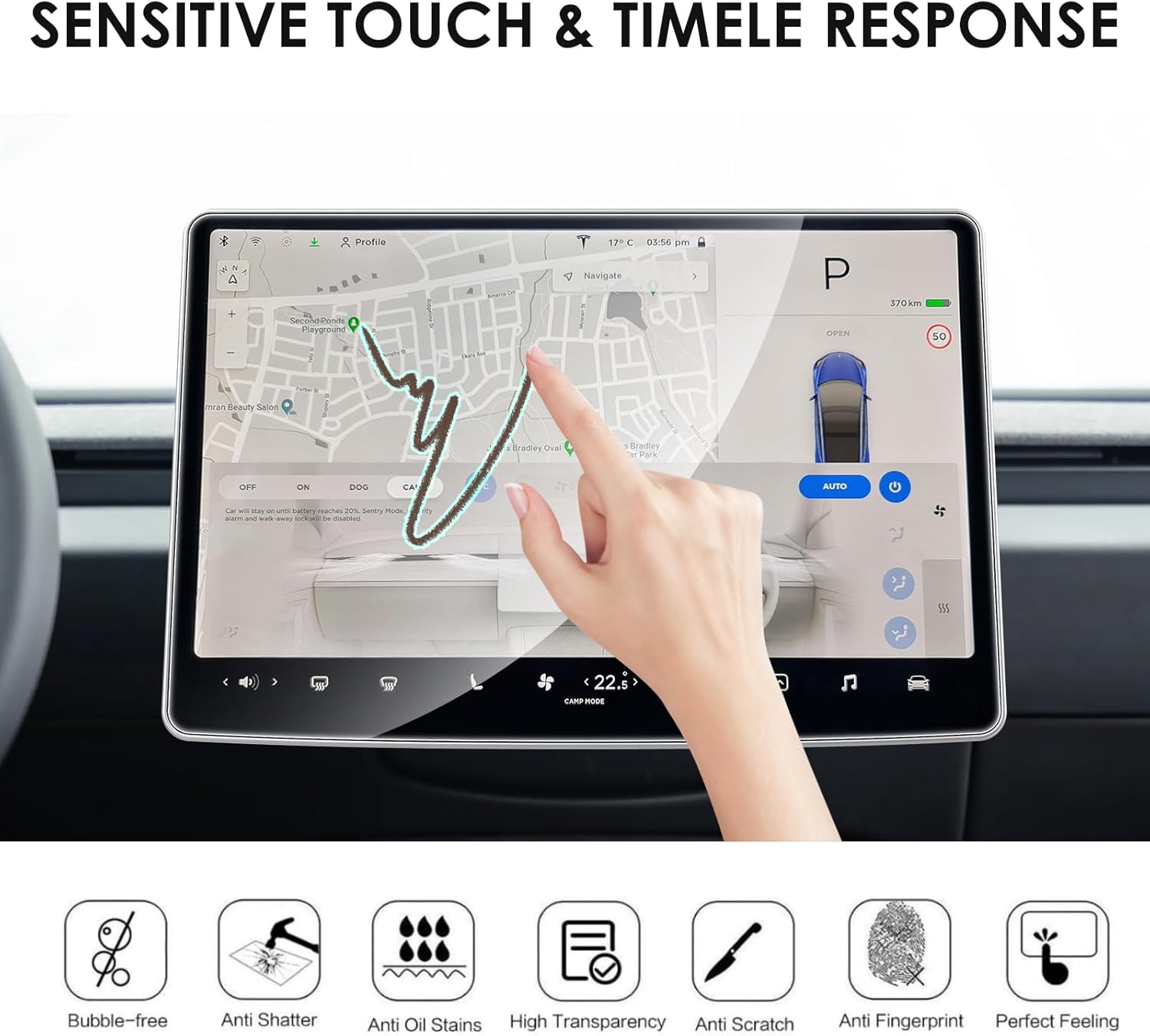 WD&CD 2PCS Screen Protector for Tesla Model y 2024-2020 / Tesla Model 3 2023-2017 15.4 inch Dashboard Touchscreen, Center Control and Navigation Touchscreen Protector 9H Anti-Scratch Shock Resistant