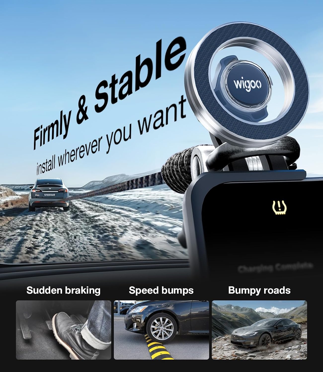 Wigoo Tesla Model Y/3 Phone Mount【Strongest Magnet, No Glue, No Blocking View】 Clamp-Style Silicone Phone Holder Holder Fit for All Phone, Tesla Model Y (Juniper) Accessories Model 3 Accessories