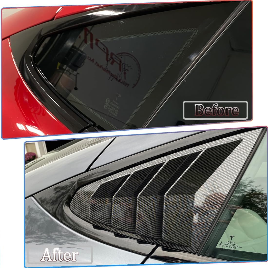 Window Louver,2Pcs Side Vent Window Louvers for Tesla Model S 2017-2025, ABS Print Sport Window Decorative Covers, Exterior Trim Accessories – Carbon Fiber