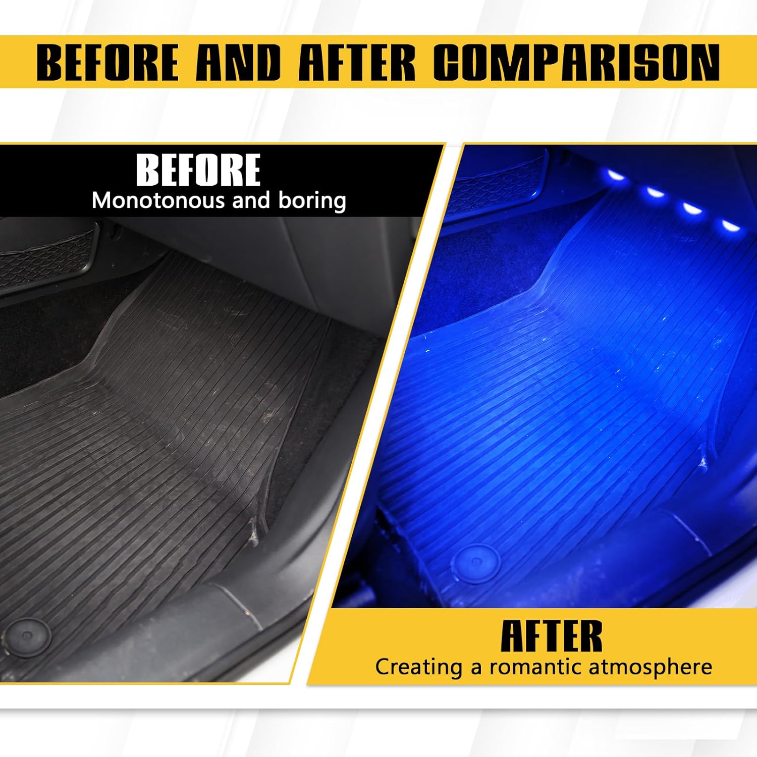 Wuyaoyao Car Interior LED Lights, 4 in 1 Car Ambient Lighting Kit, Automotive Neon Light Kit with USB Port, Decoration Lights for Car Garden Home Party, Universal Interior Atmosphere Light (Blue)