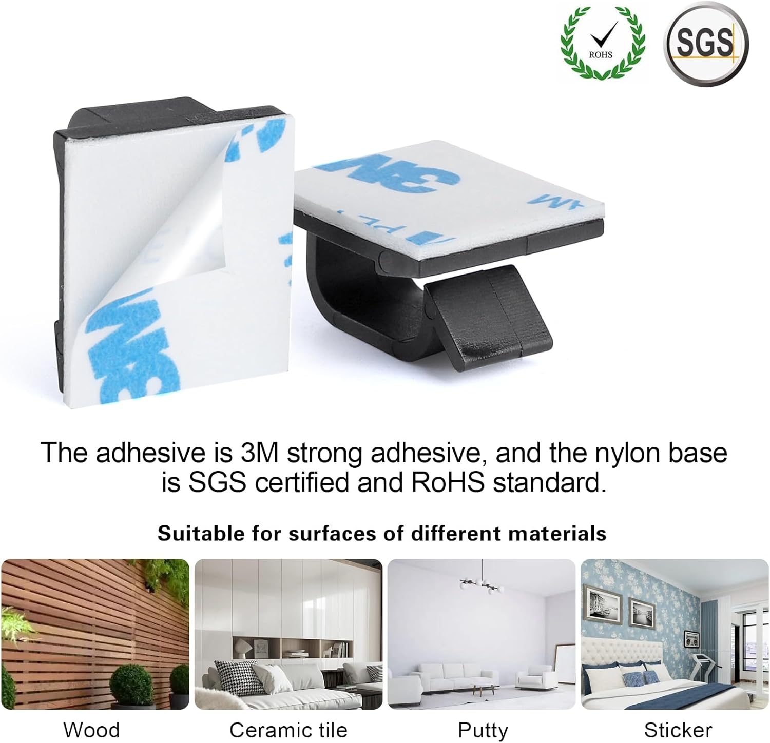 XHF 120 PCS Adhesive Cable Wire Clips Black, Outdoor Christmas Light Clips, Cable Management Wire Organizer Cord Holder for Under Desk, Car, Wall, TV PC Ethernet Cable