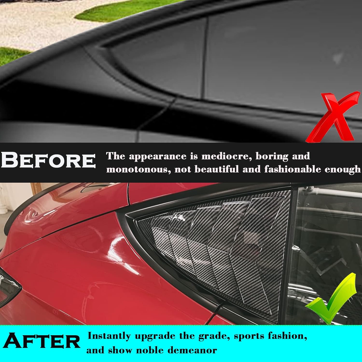 YHCDSEA for Model 3 Rear Side Window Shutter Cover Louver Sport Style Cool Exterior Decoration fit for Tesla Model 3 2017-2026 Accessories (Glossy Carbon Fiber Pattern)